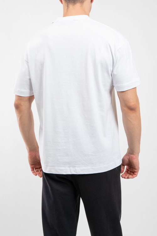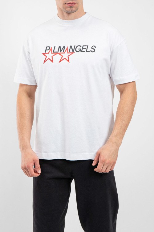 Мужская белая хлопковая футболка от Palm Angels (Палм Энджелс). Принт с логотипом на груди, круглый вырез горловины, короткий рукав, классическая длина.