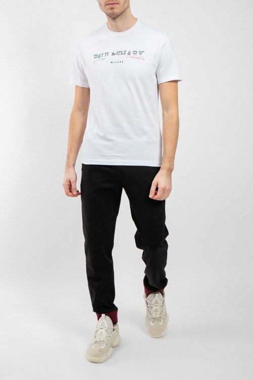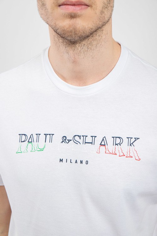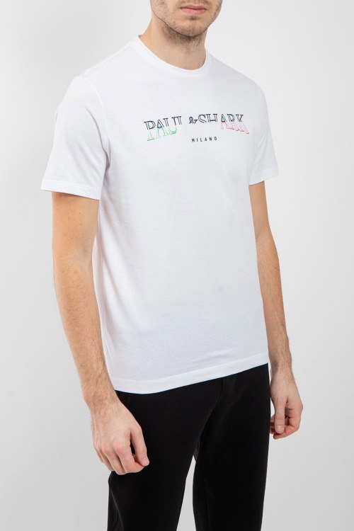 Мужская белая футболка из хлопка от Paul & Shark (Пол энд Шарк). Классическая длина, круглый вырез горловины, короткие рукава, логотип бренда на груди.