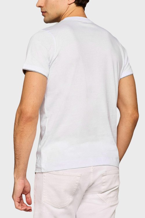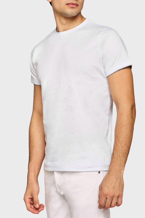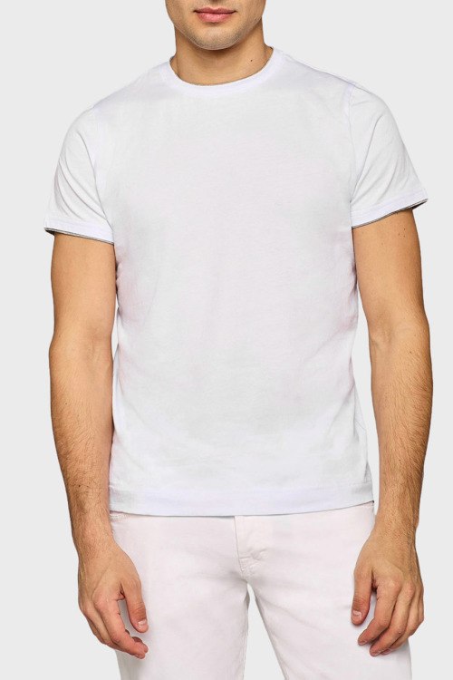 Детали: Мужская белая футболка из хлопка от Paul Taylor (Пол Тейлор). Классическая длина, круглый вырез горловины, короткие рукава