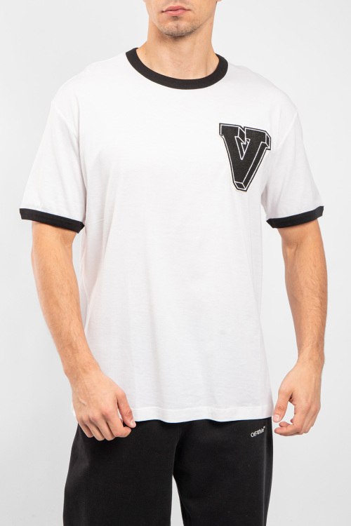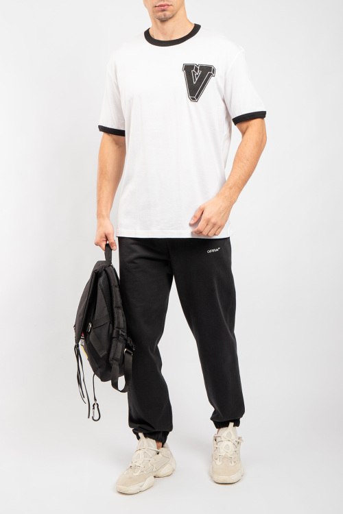 Мужская белая хлопковая футболка от Valentino (Валентино). Логотип на груди, круглый вырез горловины, короткий рукав, удлиненная длина.