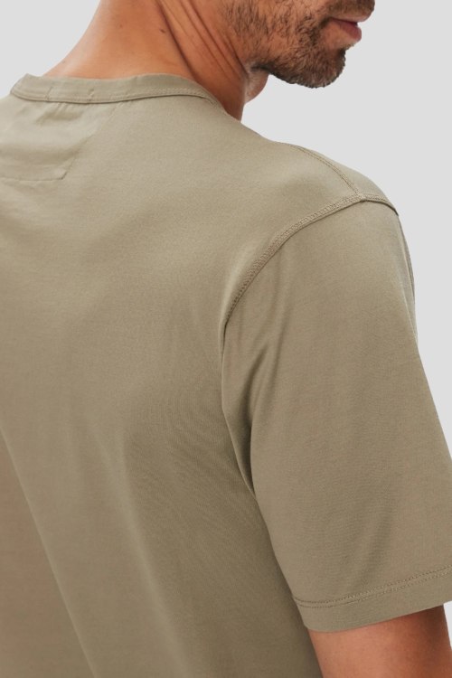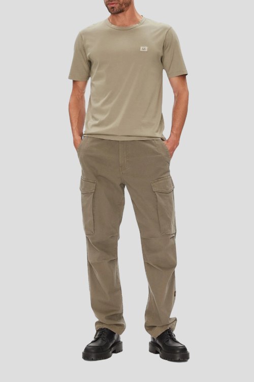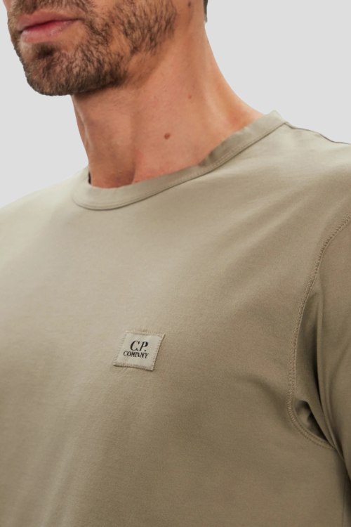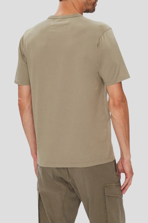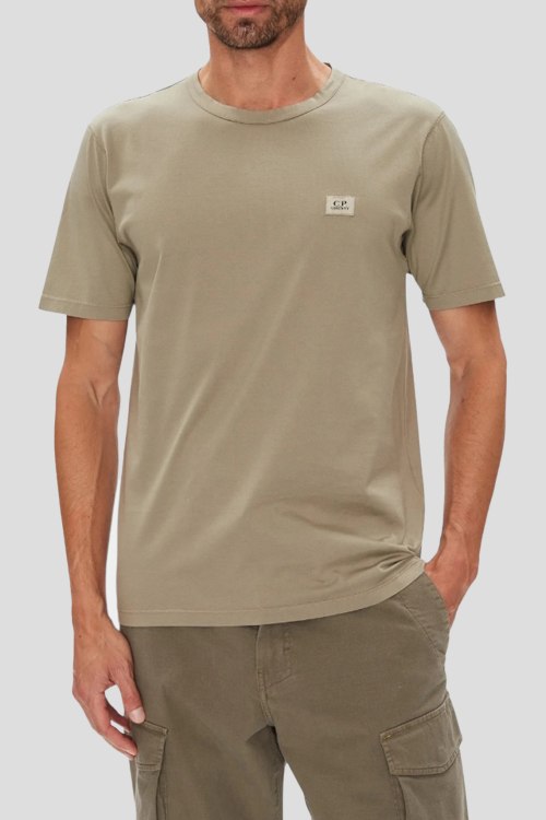 Детали: Мужская бежевая хлопковая футболка от C.P. Company (СиПи Компани). Логотип на груди, круглый вырез горловины, короткий рукав, классическая длина