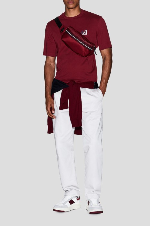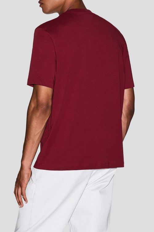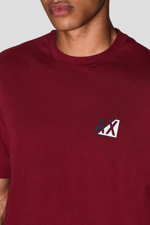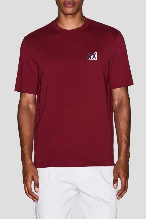 Детали: Мужская бордовая хлопковая футболка от Armani Exchange (Армани Эксчендж). Логотип на груди, круглый вырез горловины, короткий рукав, классическая длина