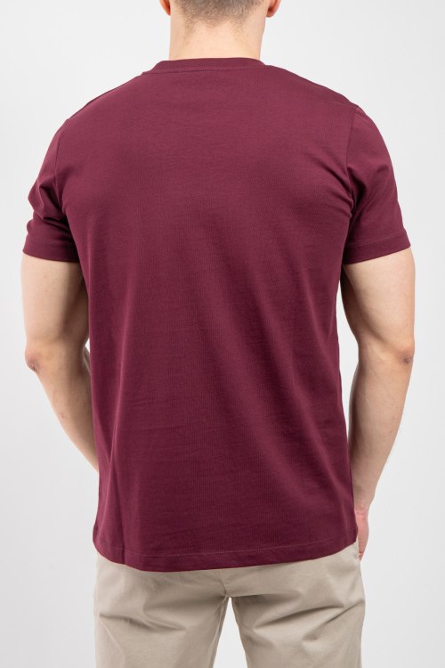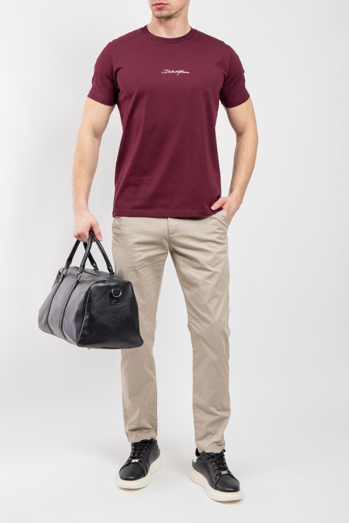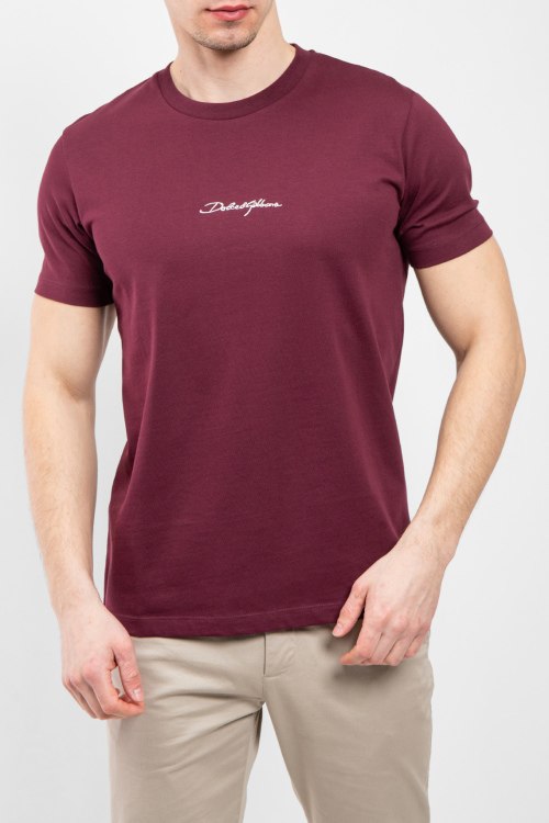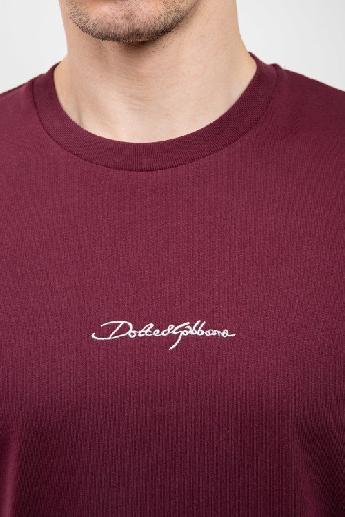 Мужская бордовая хлопковая футболка от Dolce & Gabbana (Дольче энд Габбана). Логотип на груди, круглый вырез горловины, короткий рукав, классическая длина.