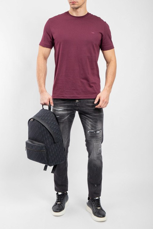 Мужская бордовая футболка из хлопка от Harmont & Blaine (Хармонт энд Блейн). Классическая длина, круглый вырез горловины, короткие рукава, вышитый логотип бренда на груди.