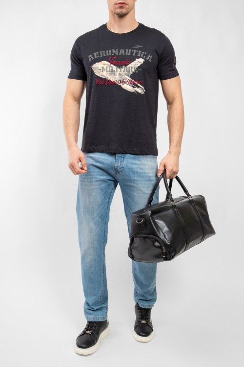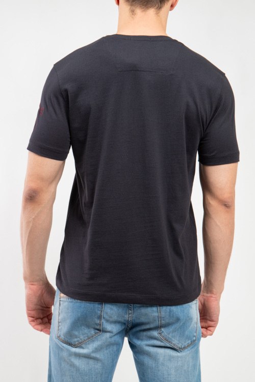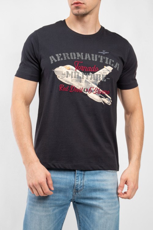Мужская черная хлопковая футболка от Aeronautica Militare (Аэронавтика Милитари). Принт на груди, круглый вырез горловины, короткий рукав, классическая длина.