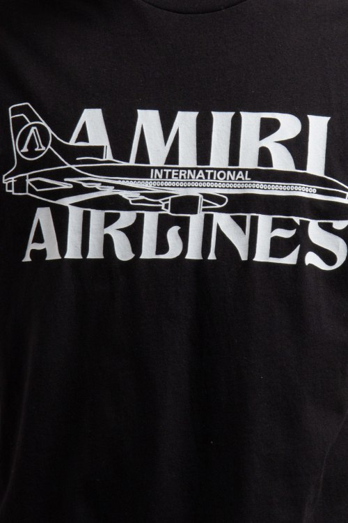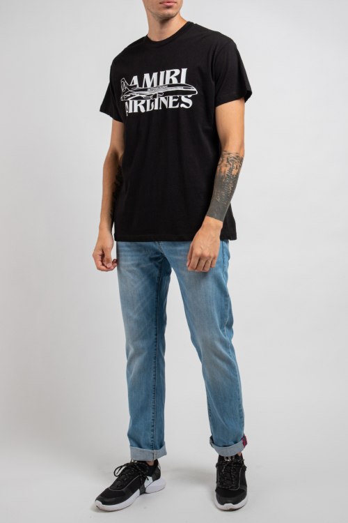 Детали: Мужская черная хлопковая футболка от Amiri (Амири). Принт с логотипом, круглый вырез горловины, короткий рукав