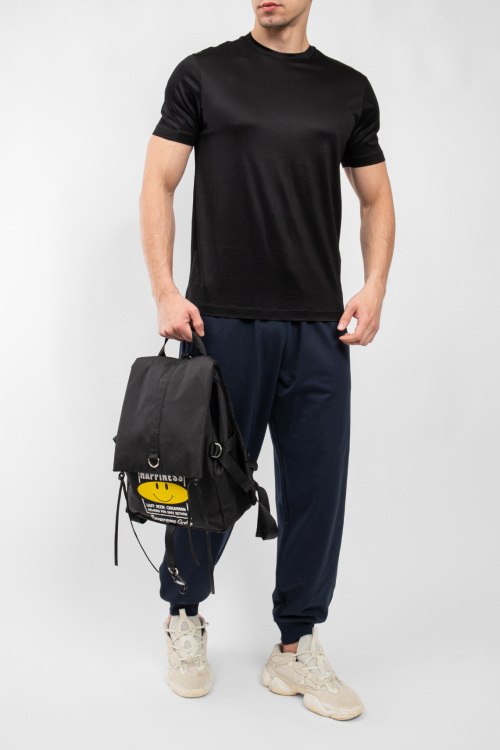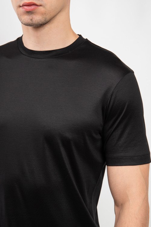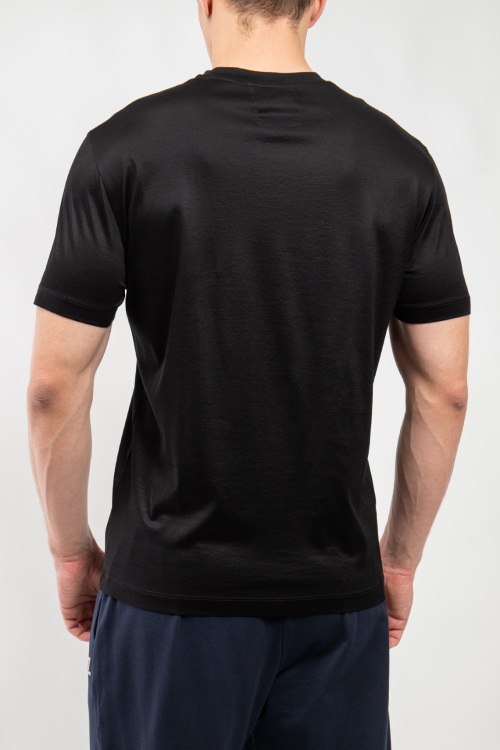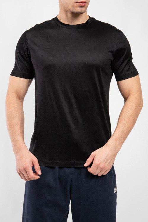 Мужская черная футболка из лиоцелла и хлопка от EA7 Emporio Armani (ЕА7 Эмпорио Армани). Круглый вырез горловины, короткий рукав, классическая длина.