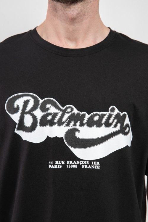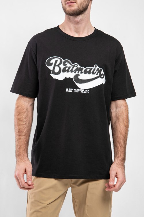 Детали: Мужская черная хлопковая футболка от Balmain (Бальман). Логотип на груди, круглый вырез горловины, короткий рукав, классическая длина