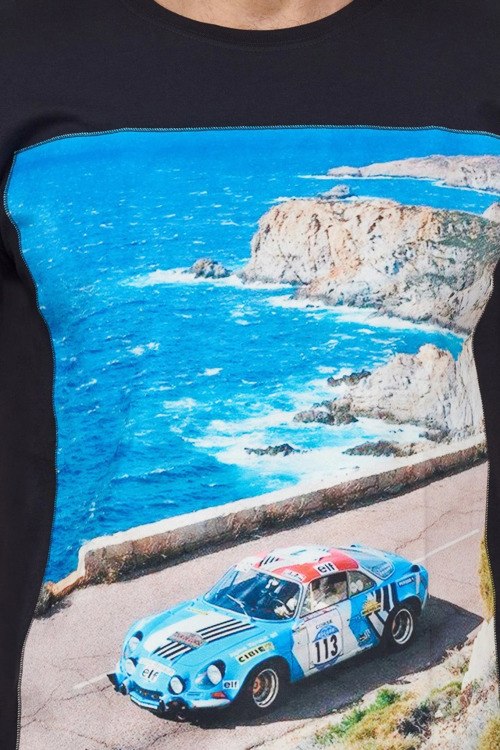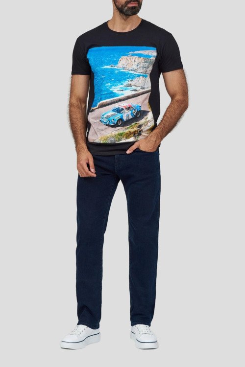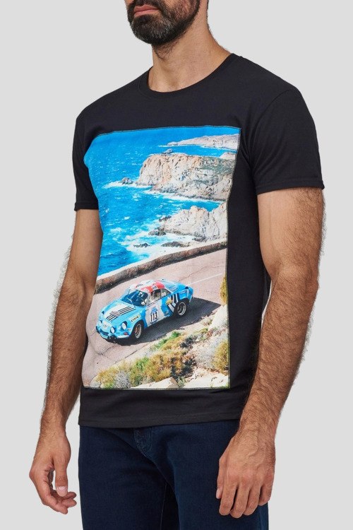 Мужская черная хлопковая футболка с принтом Cote d'Azur от Bastille (Бастилл). Принт спереди, круглый вырез горловины, короткий рукав, классическая длина