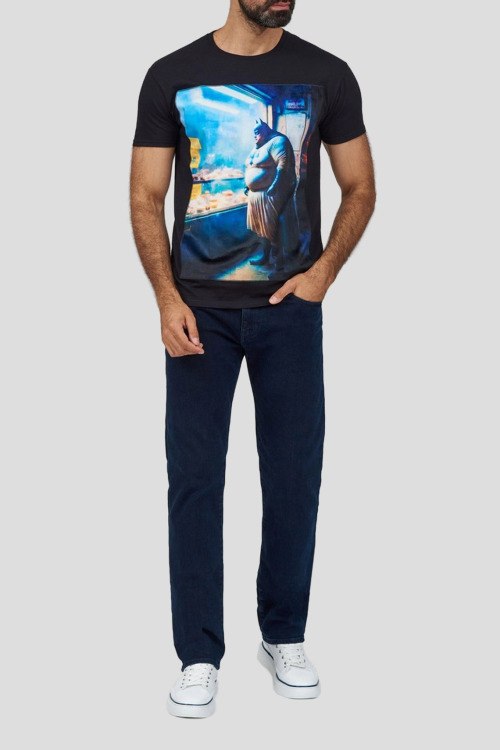 Детали: Мужская черная хлопковая футболка с принтом Gotham от Bastille (Бастилл). Принт спереди, круглый вырез горловины, короткий рукав, классическая длина