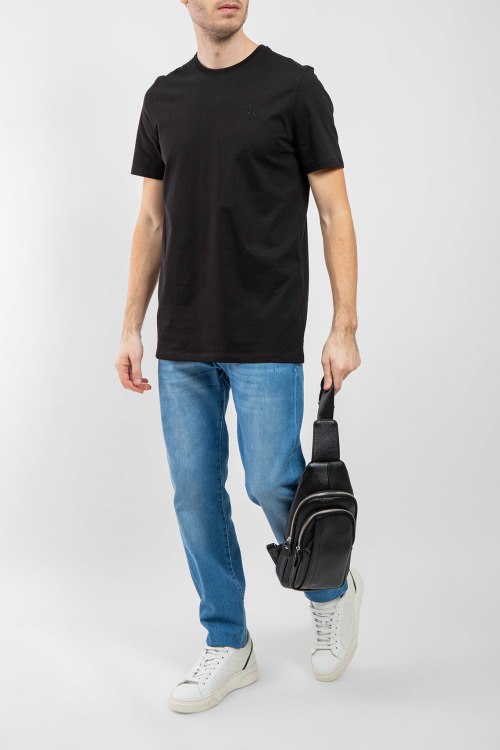 Мужская черная футболка из хлопка от Billionaire (Биллионер). Классическая длина, круглый вырез горловины, короткие рукава, вышитый логотип бренда на груди.