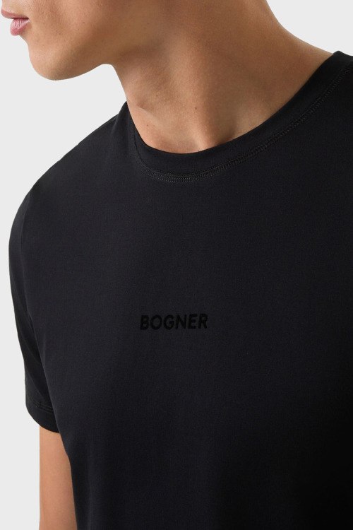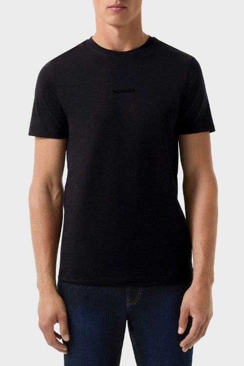 Детали: Мужская черная хлопковая футболка Roc от Bogner (Богнер). Логотип на груди, круглый вырез горловины, короткий рукав, классическая длина