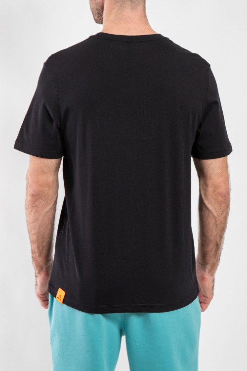 Мужская черная футболка Vito из хлопка от Bogner (Богнер). Классическая длина, круглый вырез горловины, короткие рукава, брендированный принт на груди, патч-лого.