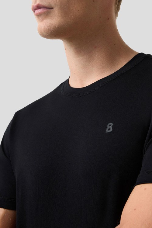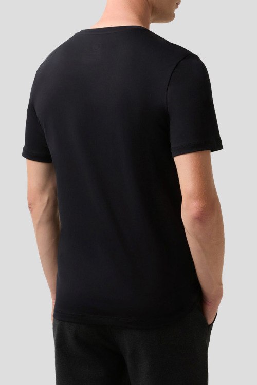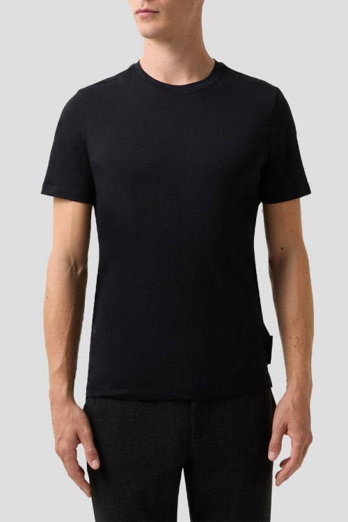 Детали: Мужская черная хлопковая футболка Roc от Bogner (Богнер). Логотип на груди, круглый вырез горловины, короткий рукав, классическая длина
