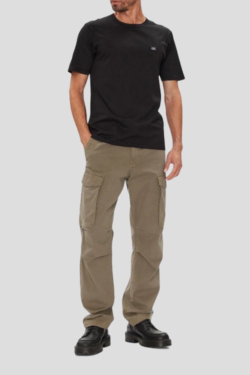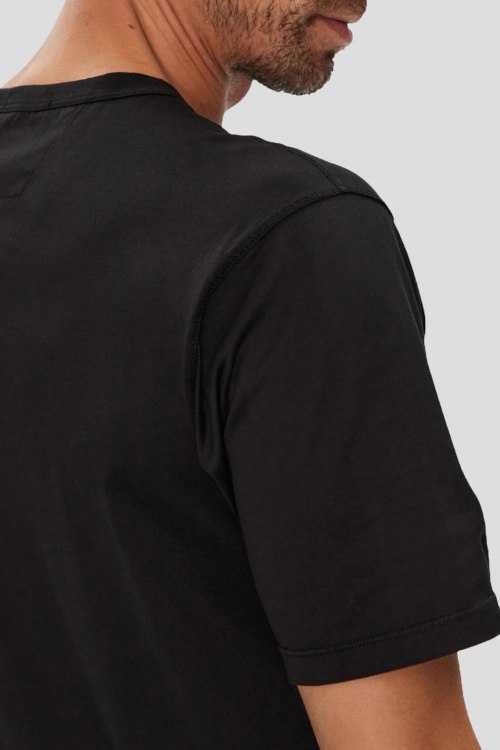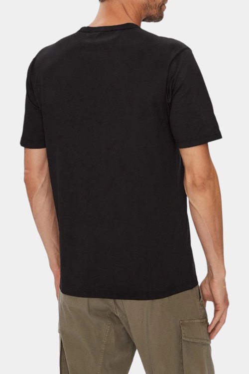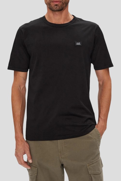 Детали: Мужская черная хлопковая футболка от C.P. Company (СиПи Компани). Логотип на груди, круглый вырез горловины, короткий рукав, классическая длина