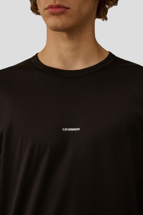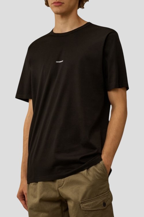 Детали: Мужская черная хлопковая футболка от C.P. Company (СиПи Компани). Логотип на груди, круглый вырез горловины, короткий рукав, классическая длина