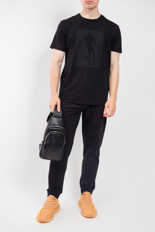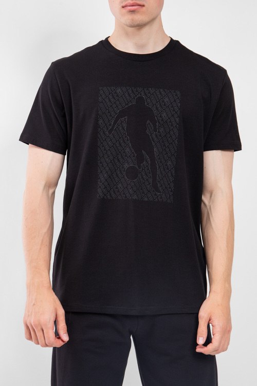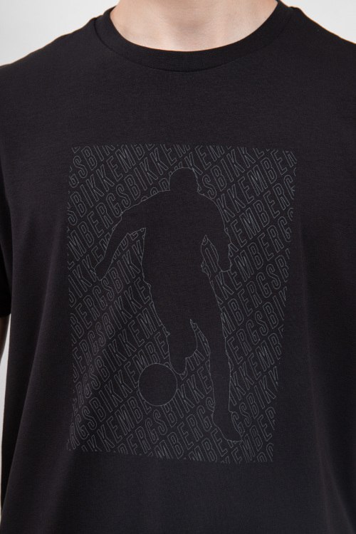 Детали: Мужская черная хлопковая футболка от Bikkembergs (Биккембергс). Принт с логотипом на груди, круглый вырез горловины, короткий рукав, классическая длина