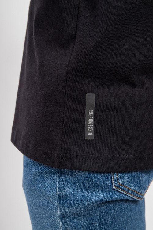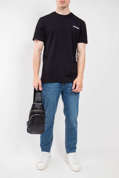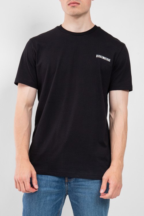 Детали: Мужская черная хлопковая футболка от Bikkembergs (Биккембергс). Принт с логотипом на груди, круглый вырез горловины, короткий рукав, классическая длина