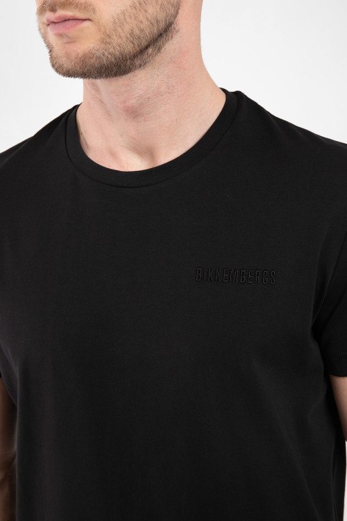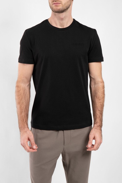 Мужская черная хлопковая футболка от Bikkembergs (Биккембергс). Вышитый логотип спереди, круглый вырез горловины, короткий рукав, классическая длина.
