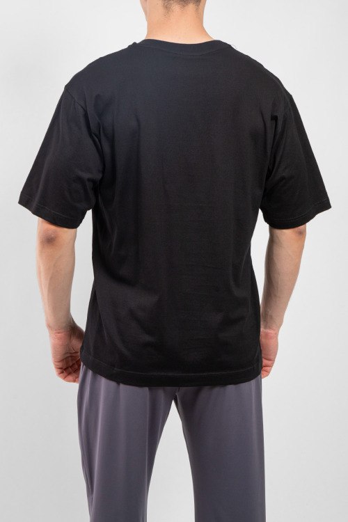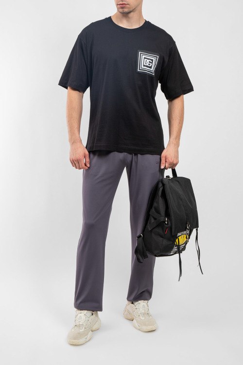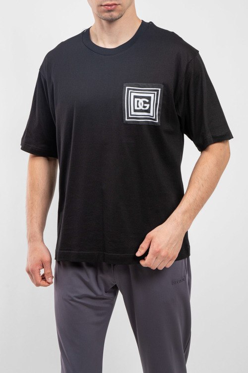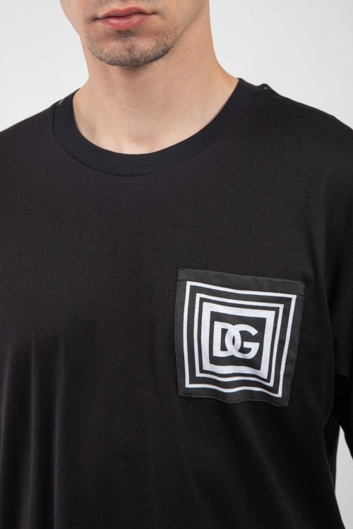 Мужская черная футболка из хлопка от Dolce & Gabbana (Дольче энд Габбана). Круглый вырез горловины, короткие рукава, нагрудный карман с логотипом бренда.