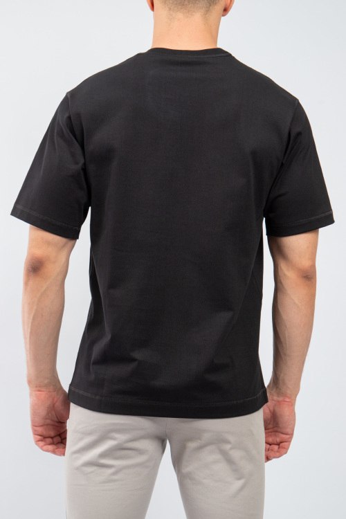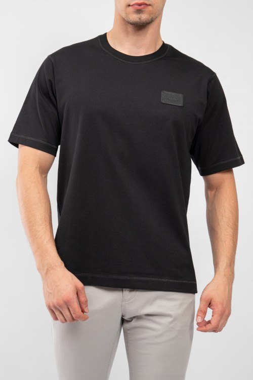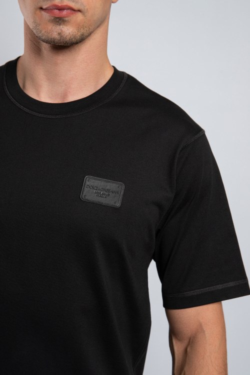 Мужская черная хлопковая футболка от Dolce & Gabbana (Дольче энд Габбана). Логотип на груди, круглый вырез горловины, короткий рукав, классическая длина.