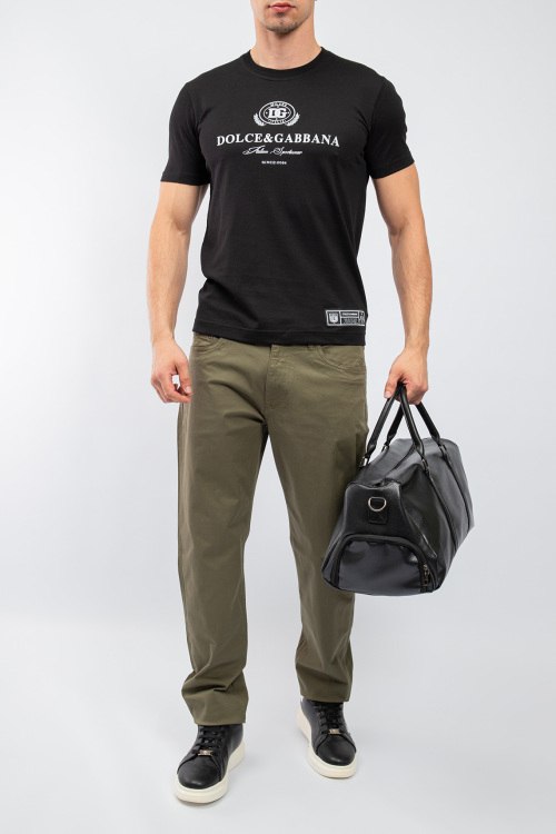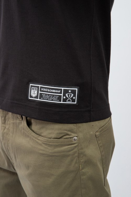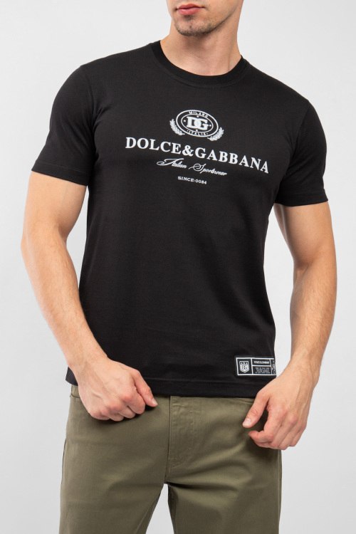 Мужская черная хлопковая футболка от Dolce & Gabbana (Дольче энд Габбана). Логотип на груди, круглый вырез горловины, короткий рукав, классическая длина.