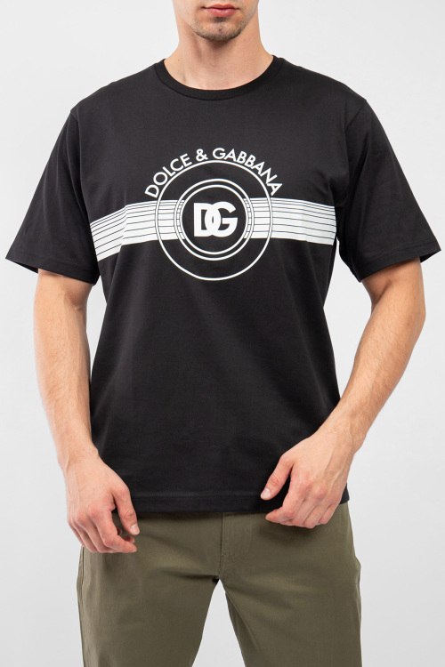 Мужская черная хлопковая футболка от Dolce & Gabbana (Дольче энд Габбана). Логотип на груди, круглый вырез горловины, короткий рукав, классическая длина.