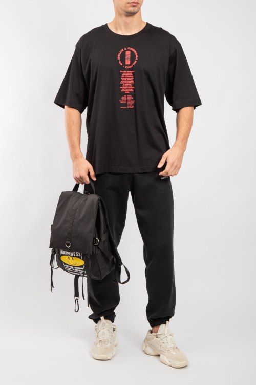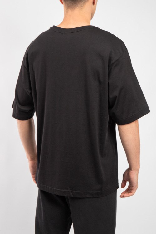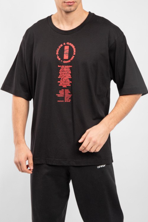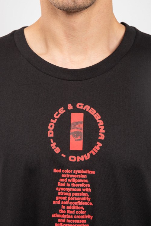 Мужская черная хлопковая футболка от Dolce & Gabbana (Дольче энд Габбана). Принт на груди, круглый вырез горловины, короткий рукав, удлиненная длина.