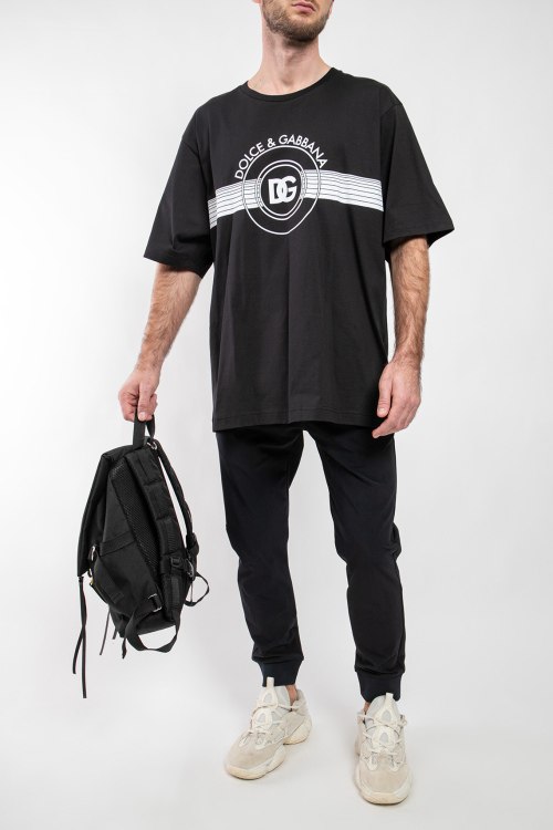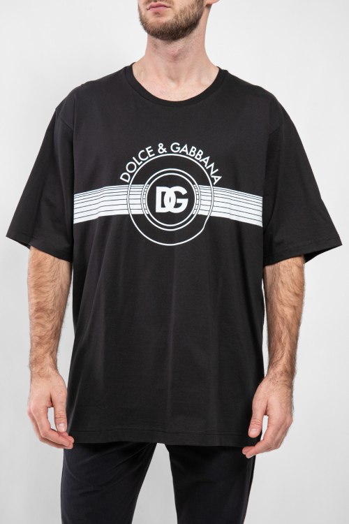 Детали: Мужская черная хлопковая футболка от Dolce & Gabbana (Дольче энд Габбана). Логотип на груди, круглый вырез горловины, короткий рукав, классическая длина