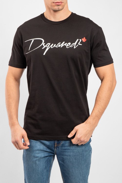 Мужская черная хлопковая футболка от Dsquared2 (Дискваред). Логотип на груди, круглый вырез горловины, короткий рукав, классическая длина.