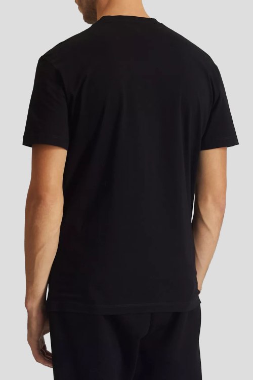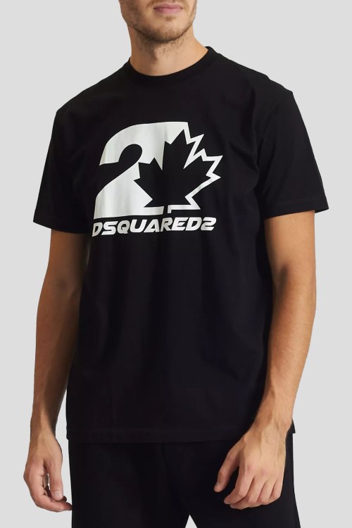 Детали: Мужская черная хлопковая футболка от Dsquared2 (Дискваред). Принт с логотипом на груди, круглый вырез горловины, короткий рукав, классическая длина
