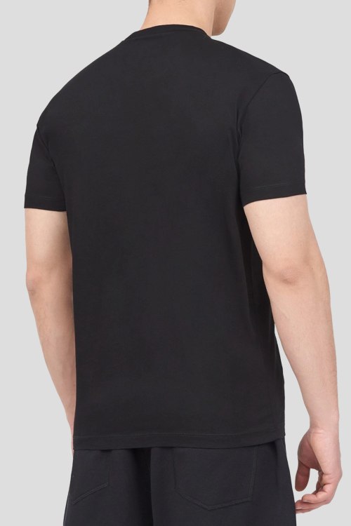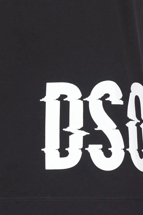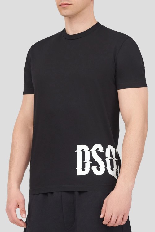 Детали: Мужская черная хлопковая футболка DSQ от Dsquared2 (Дискваред). Принт с логотипом, круглый вырез горловины, короткий рукав, классическая длина