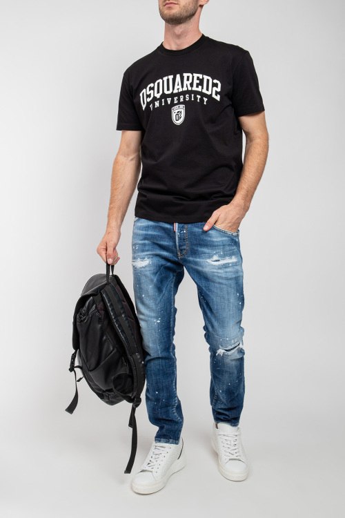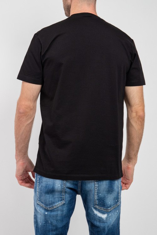 Мужская черная футболка из хлопка от Dsquared2 (Дискваред). Классическая длина, круглый вырез горловины, короткие рукава, спереди принт с логотипом бренда и фирменной надписью.