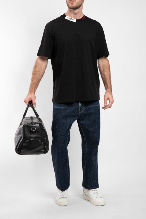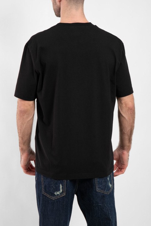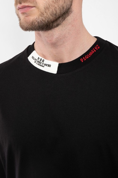 Мужская черная хлопковая футболка от Dsquared2 (Дискваред). Нашивка с логотипом, круглый вырез горловины, короткий рукав, классическая длина.