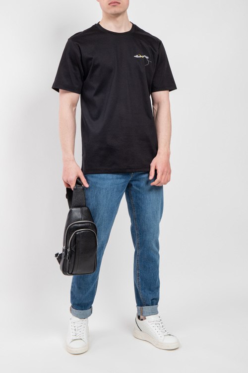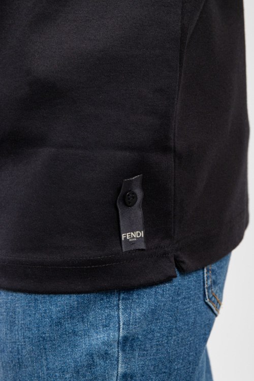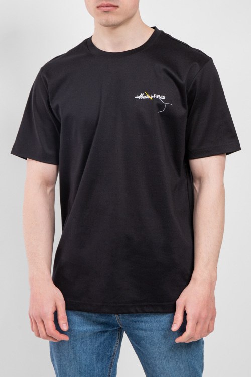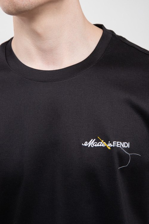 Мужская белая футболка из хлопка от Fendi (Фенди). Классическая длина, круглый вырез горловины, короткие рукава, вышитый логотип бренда на груди, патч-лого.
