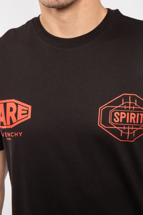 Мужская черная хлопковая футболка от Givenchy (Живанши). Принт на груди, круглый вырез горловины, короткий рукав, классическая длина.