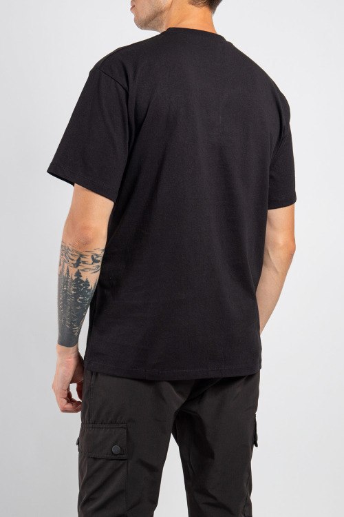 Мужская черная футболка из хлопка от Gucci (Гуччи). Классическая длина, круглый вырез горловины, короткие рукава, спереди принт с логотипом бренда