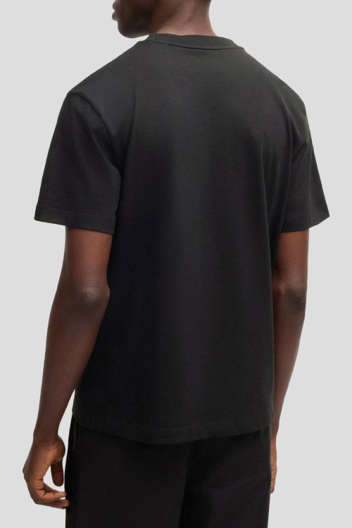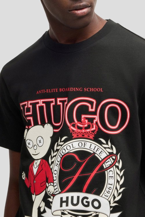 Детали: Мужская черная хлопковая футболка Daporoni от Hugo by Hugo Boss (Хуго бай Хуго Босс). Принт на груди, круглый вырез горловины, короткий рукав, классическая длина