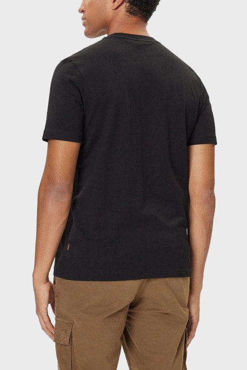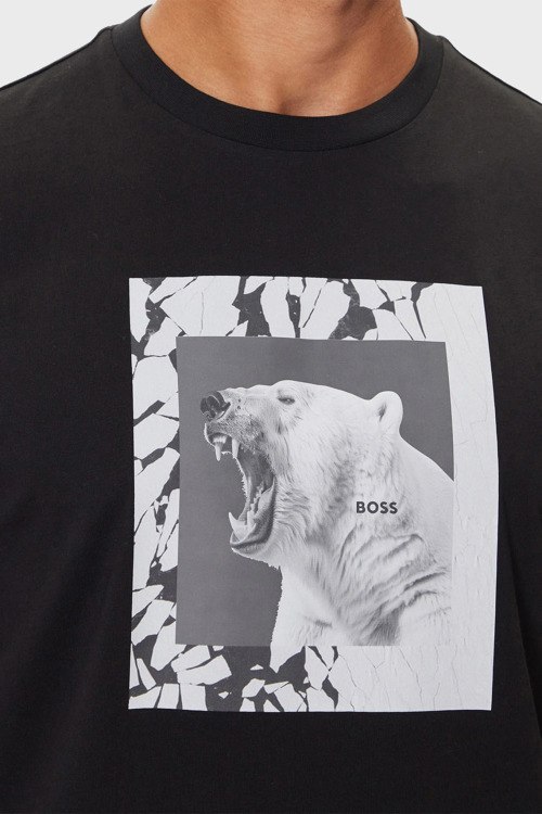 Детали: Мужская черная хлопковая футболка Lupo от Hugo Boss (Хуго Босс). Принт на груди, круглый вырез горловины, короткий рукав, классическая длина