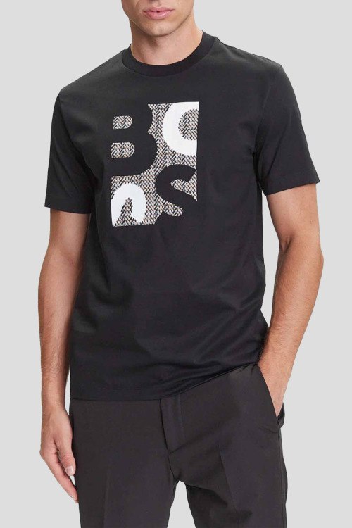 Детали: Мужская черная хлопковая футболка H-Thompson от Hugo Boss (Хуго Босс). Логотип на груди, круглый вырез горловины, короткий рукав, классическая длина