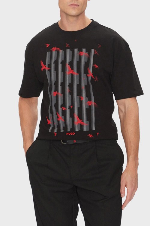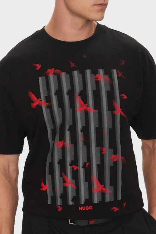 Детали: Мужская черная хлопковая футболка Digraph от Hugo by Hugo Boss (Хуго бай Хуго Босс). Принт спереди, круглый вырез горловины, короткий рукав, классическая длина