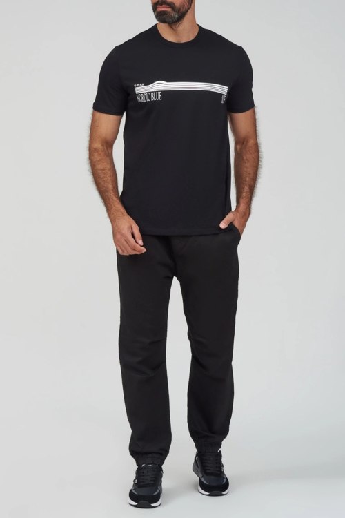 Детали: Мужская черная хлопковая футболка от Ice Play (Айс Плей). Принт на груди, круглый вырез горловины, короткий рукав, классическая длина
