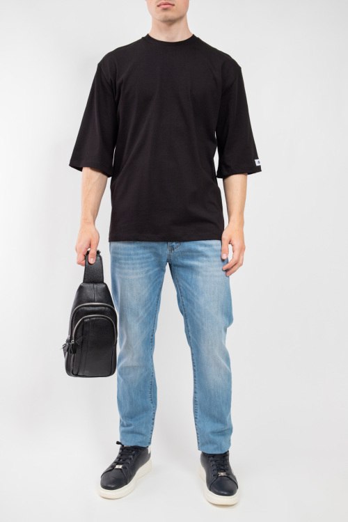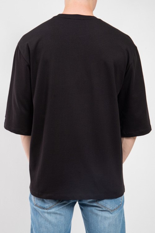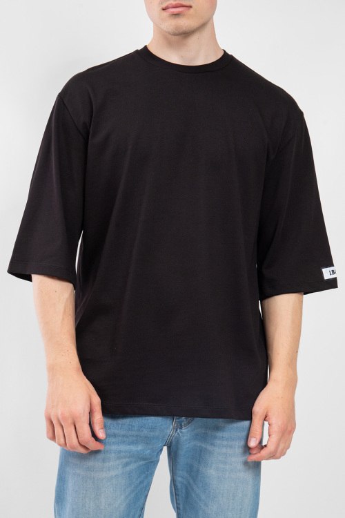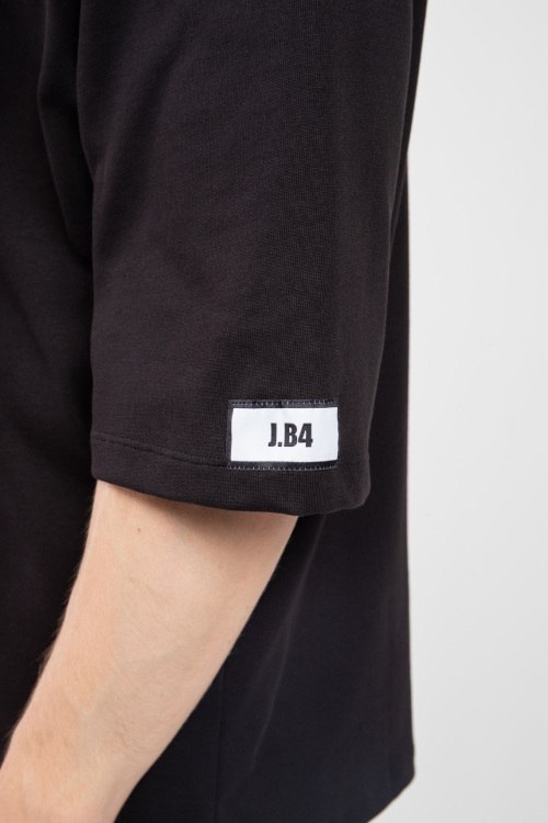 Детали: Мужская черная хлопковая футболка от J.B4 Just Before (Джаст Бифо). Круглый вырез горловины, удлиненный рукав с нашивкой логотипа, классическая длина