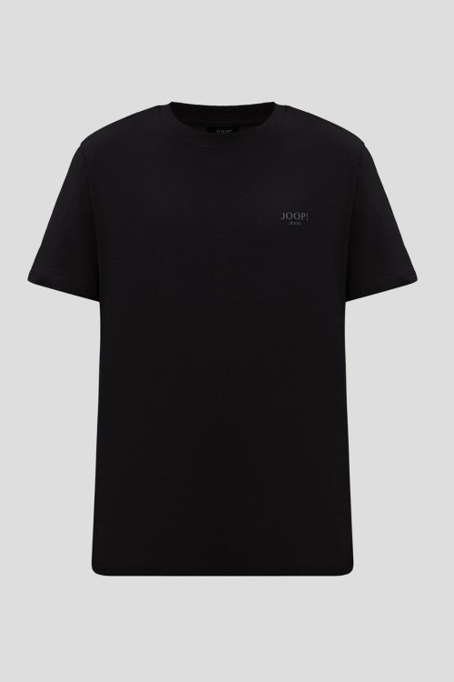 Детали: Мужская черная футболка из хлопка от Joop! (Йооп!). Прямой фасон, классическая длина, короткие рукава, круглый вырез горловины, принт логотипа на груди. Замеры: длина рукава: короткий, для размера М - 20 см, обхват груди: для размера М - 106 см, обхват талии: для размера М - 98 см, длина изделия по среднему шву спинки от горловины: для размера М - 66 см