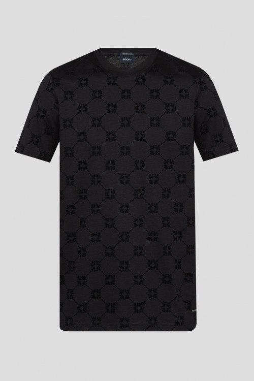 Детали: Мужская черная хлопковая футболка от Joop! (Йооп!). Узор по всей поверхности, круглый вырез горловины, короткий рукав. Длина рукава: короткий, для размера M - 23 см, обхват груди: для размера M - 106 см, обхват талии: для размера M - 104 см, длина изделия по среднему шву спинки от горловины: для размера M - 70 см