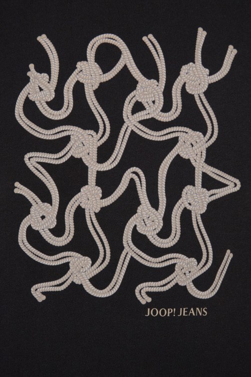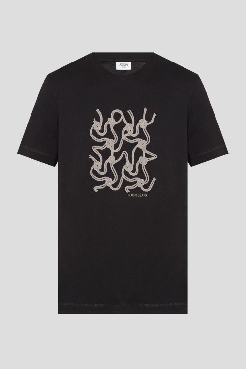 Детали: Мужская черная хлопковая футболка от Joop! (Йооп!). Принт на груди, круглый вырез горловины, короткий рукав. Длина рукава: короткий, для размера M - 23 см, обхват груди: для размера M - 112 см, обхват талии: для размера M - 112 см, длина изделия по среднему шву спинки от горловины: для размера M - 68,5 см