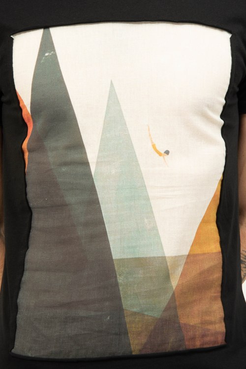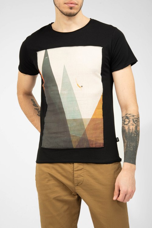 Футболка черного цвета из натурального хлопка. Однотонная футболка прямого силуэта, короткий рукав, круглый вырез горловины, спереди украшена принтом.