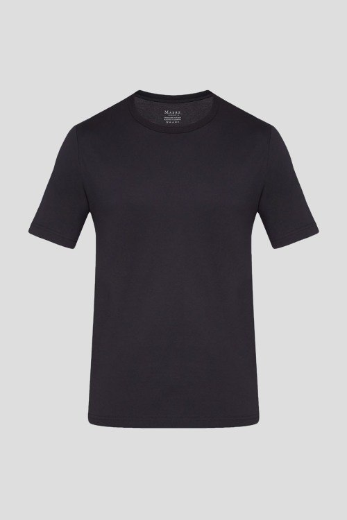 Детали: Мужская черная футболка из хлопка от Maerz (Маерз). Классическая длина, круглый вырез горловины, короткие рукава, патч-лого