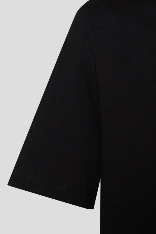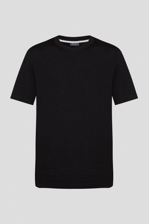 Детали: Мужская черная футболка из хлопка от Maerz (Маерз). Круглый вырез горловины, короткие рукава, классическая длина. Измерения: длина рукава: короткий, для размера 50 - 25 см, обхват груди: для размера 50 - 100 см, обхват талии: для размера 50 - 100 см, длина изделия по среднему шву спинки от горловины: для размера 50 - 69 см