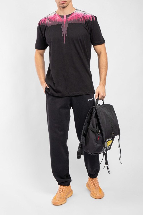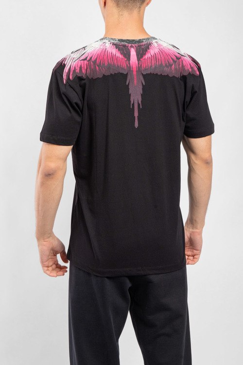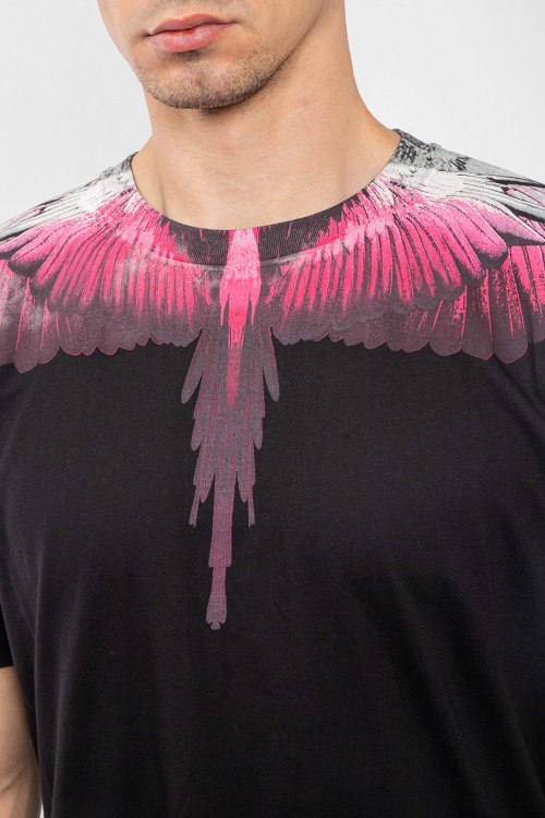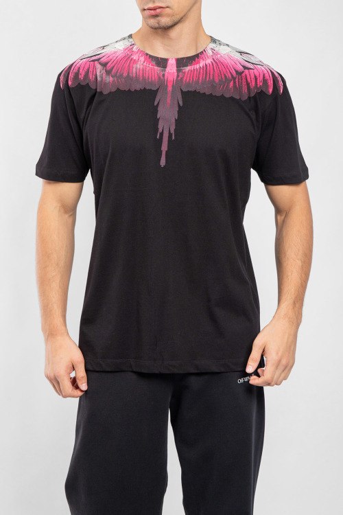 Мужская черная хлопковая футболка от Marcelo Burlon (Марчело Бурлон). Принт в виде крыльев, круглый вырез горловины, короткий рукав, классическая длина.